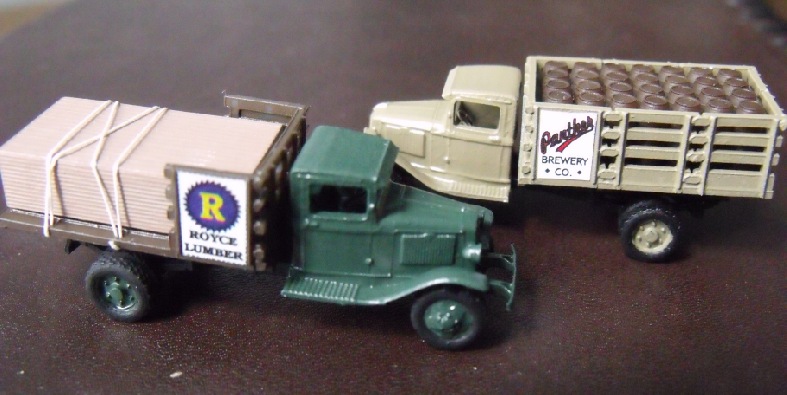 These are scale model kits of the 1934 BB series truck. The BB series was in production from 1932 to 1934. It was equipped with either the standard four cylinder or the optional “flathead” V-8 (this kit depicts the V-8). The BB-157 indicates the longer wheelbase version (157”) rather than the shorter wheelbase version (131.5”). The kit is available with two different cargo bed/loads, a stake bed with beer kegs or a flat bed with a lumber load.