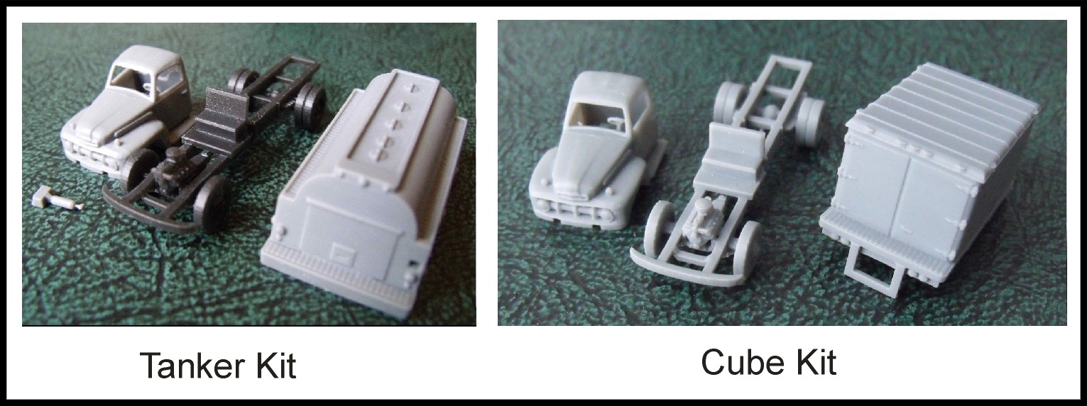 The cube truck kit includes 3 3D printed parts; chassis, cab and cube bed. Also included, one sheet of decals.